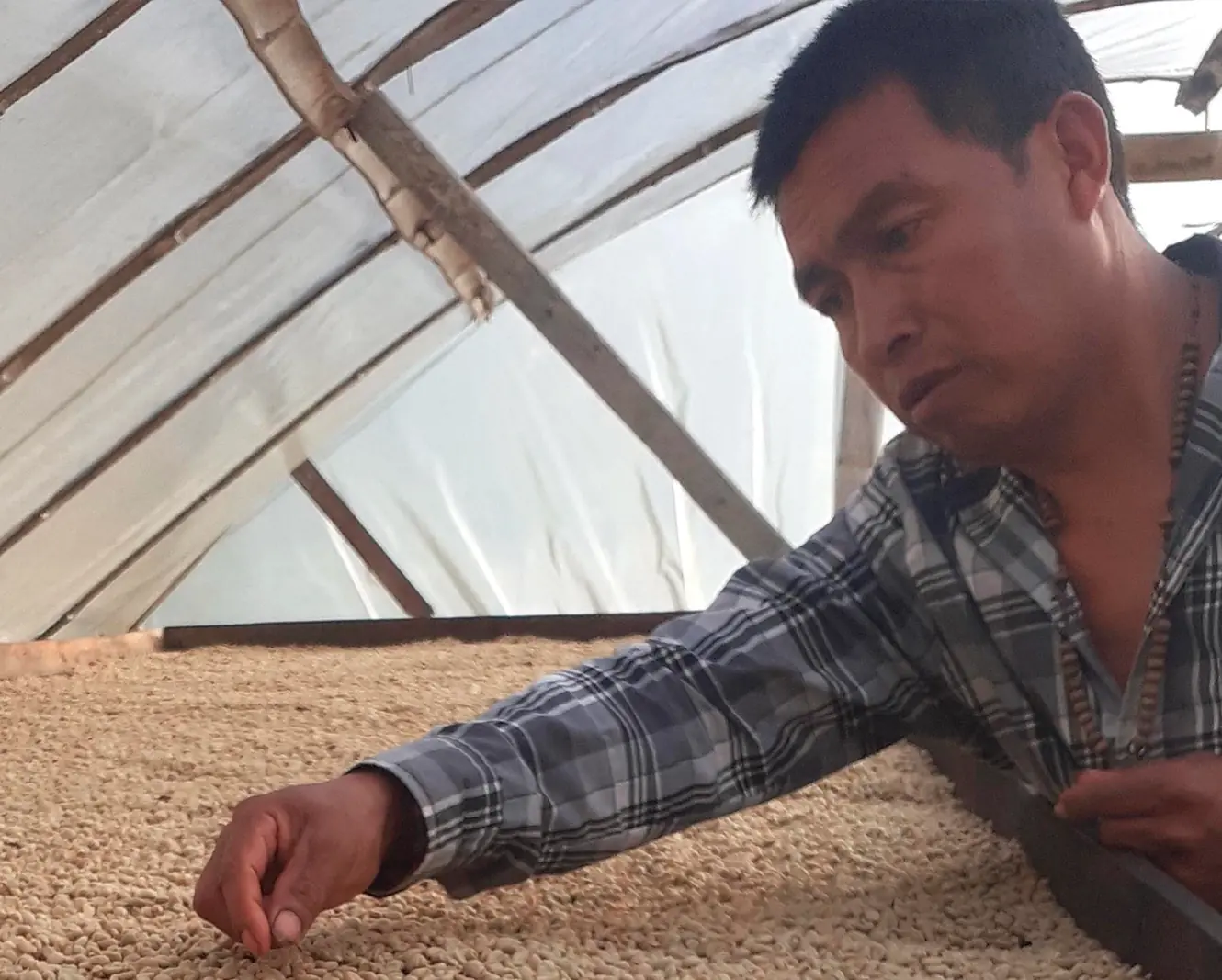 Der Kaffee wird 3 bis 4 Wochen lang auf Trocknungsbetten stabilisiert. Diese langsame Trocknung ist entscheidend für die Langlebigkeit des Geschmacks, bevor der Kaffee für die finale Dreschung bereit ist und die physische Auswahl für den Export.